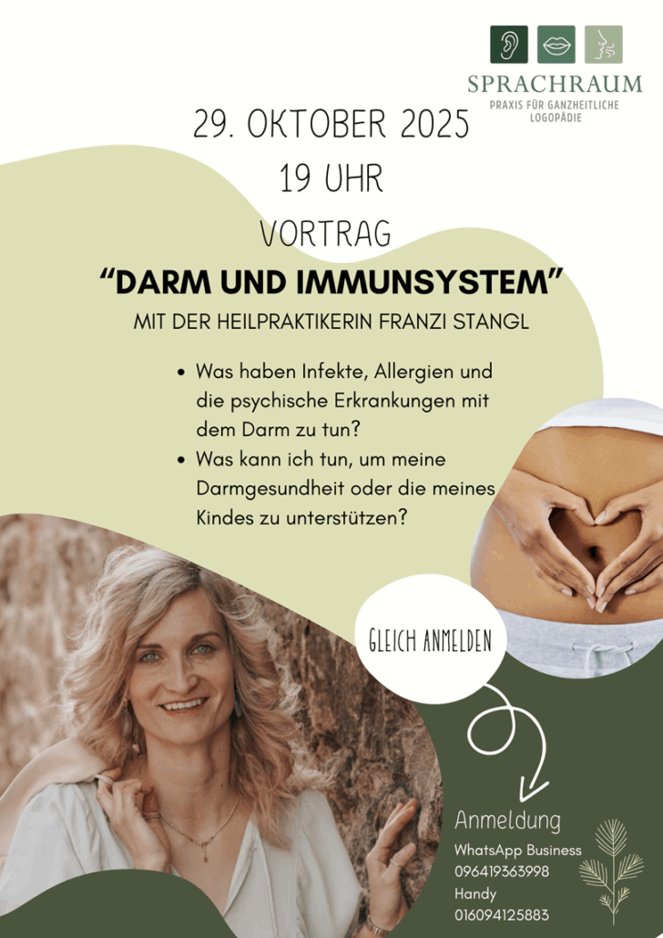 Am 29. Oktober 2025 um 19 Uhr lädt die Praxis Sprachraum – Praxis für ganzheitliche Logopädie zu einem spannenden Vortrag mit der Heilpraktikerin Franzi Stangl ein.